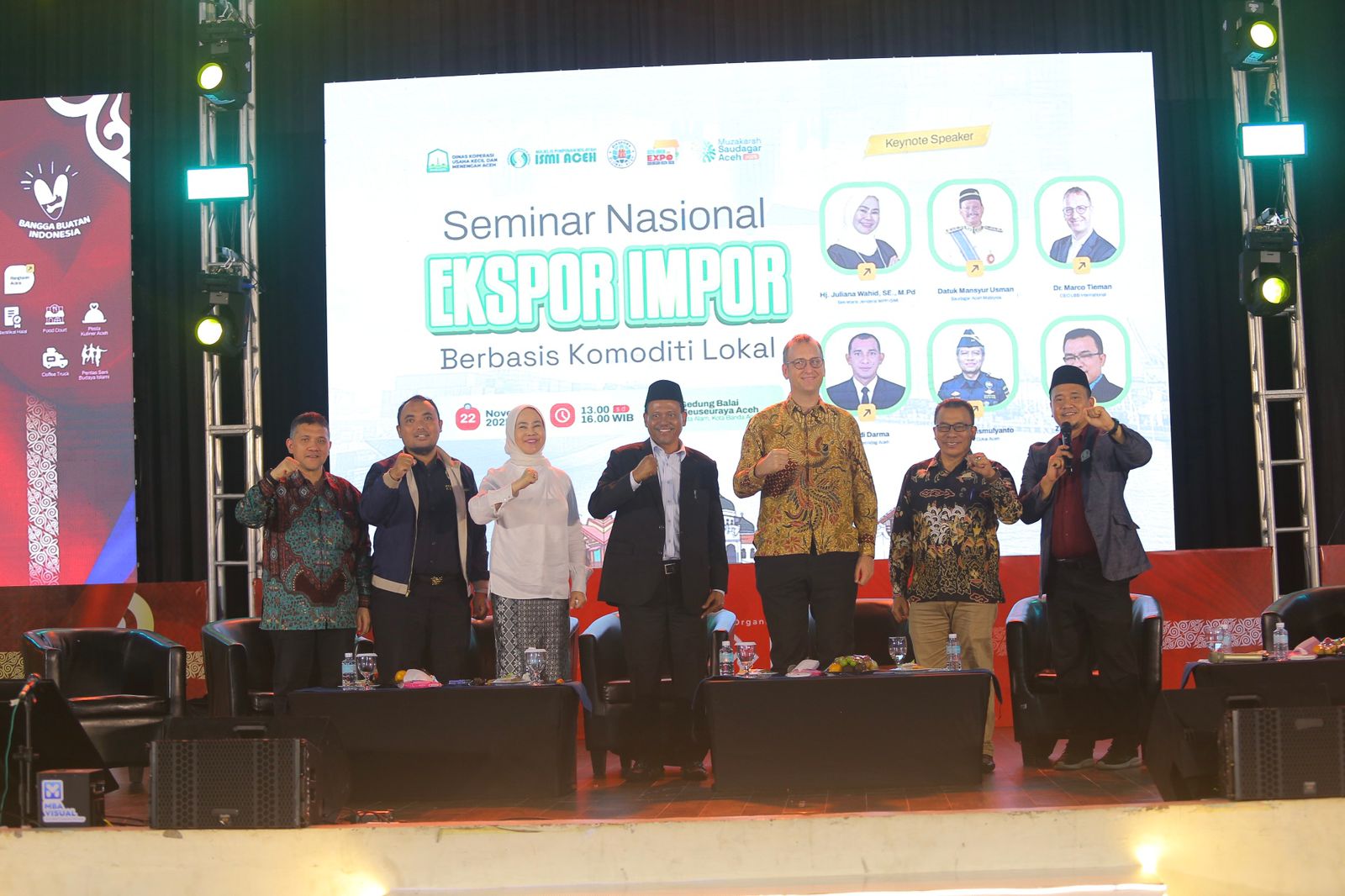 “Itu menurut saya sangat merugikan Aceh,” kata Datuk Haji Mansyur Usman saat mengisi forum Seminar Nasional Ekspor-Impor Berbasis Komoditas Lokal yang diselenggarakan oleh Diskop UKM Aceh bekerja sama dengan MPW ISMI Aceh dan berkolaborasi dengan Diaspora Global Aceh, di Balai Meuseuraya Aceh (BMA), Kota Banda Aceh, Sabtu (22/11/2025).